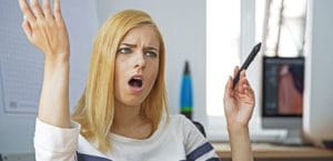 Angry woman working on compute